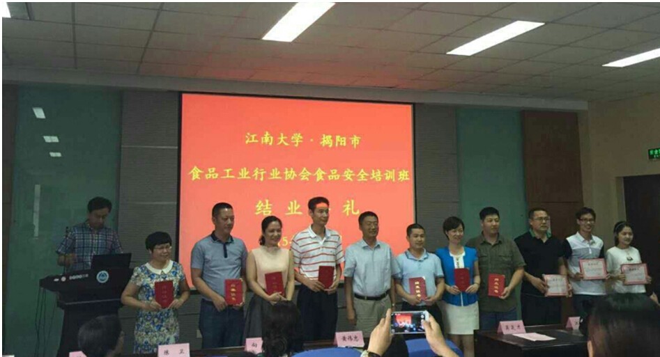 6月21日 -28日,在揭陽市食品藥品監(jiān)督管理局的指導(dǎo)和協(xié)助下,揭陽市食品工業(yè)行業(yè)協(xié)會組織了上海、江蘇無錫江南大學(xué)為期7天的學(xué)習(xí)交流培訓(xùn)班。參加培訓(xùn)班的人員有:市食品工業(yè)行業(yè)協(xié)會成員、市藍城區(qū)管委會、市商務(wù)局、市科技局和市食品藥品監(jiān)管局約60人。我司技術(shù)研發(fā)中心趙淑昂、羅丹虹代表公司參加本次培訓(xùn)活動。