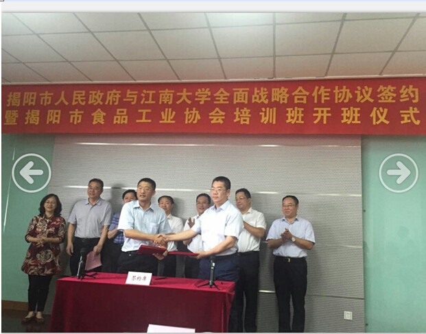 本次學(xué)習(xí)交流培訓(xùn)得到市委市政府的高度重視,在開班儀式上,揭陽市副市長曾瑞如致辭并作開班動員講話,江南大學(xué)食品學(xué)院陳衛(wèi)院長與揭陽市藍城區(qū)管委會、揭陽市產(chǎn)業(yè)轉(zhuǎn)移工業(yè)園主任蔡淡群簽約全面戰(zhàn)略合作協(xié)議和成立國家級食品研究中心協(xié)議。揭陽市食品藥品監(jiān)督管理局局長黃偉忠對揭陽市食品工業(yè)情況作了全面的介紹。